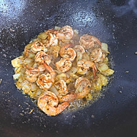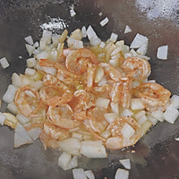Add onions and stir-fry until fragrant, pour in the shrimp and fry until golden brown on both sides