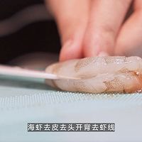 Peel the shrimp, remove the head, open the back and remove the shrimp line