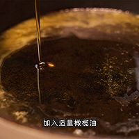 Add a small piece of butter to the appropriate amount of olive oil (The amount of oil can be submerged in the shrimp)