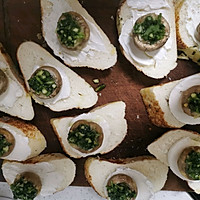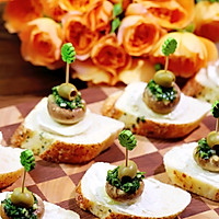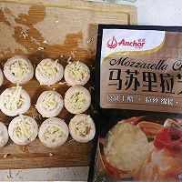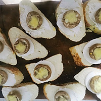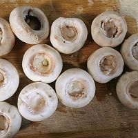 The mushrooms are enlarged with minced garlic, then filled with mozzarella cheese, and baked in the oven at 180 degrees for 8 minutes