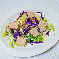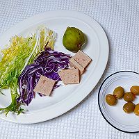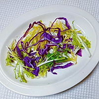 Bitter chrysanthemum and purple cabbage are cut and put on a plate