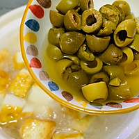 When the right time meets the right dried tofu, the dried tofu is fried until golden brown on all sides, the crispy texture, precipitated slightly salty, poured with Spanish green olive juice and green olives, the most innocent taste is just like this, the dried tofu is crispy and soft, it is complex, and it is an unforgettable taste experience for a long time. Restore the most authentic taste.