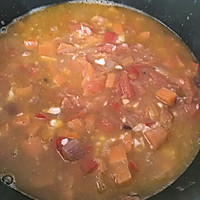 Add the squid rings and olive slices, add 100 grams of water and continue to simmer for 10 minutes