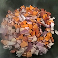 Stir-fry carrots, onions, and red peppers until fragrant