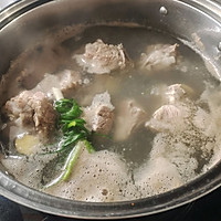 Wash the ribs, put cold water in a bowl, add an appropriate amount of water, add 3~5 slices of ginger and 1 green onion, 1 tablespoon of cooking wine, and blanch over heat.