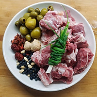Prepare ingredients for later use: 800 grams of pork ribs, appropriate amount of Spanish green olives, 1 piece of ginger, 1 green onion knot, 2 red dates, wolfberry, white beans, black beans, barley and other nourishing stew ingredients for later use.