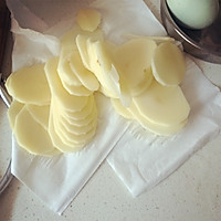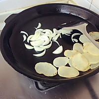 Set aside the potato slices and sauté the onion until fragrant. Mix the two ingredients, salt, add black pepper.