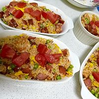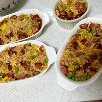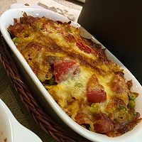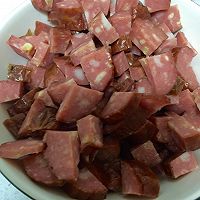 Harbin red sausage diced. Or put your favorite sausage or bacon too!
