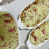 Put in the oven and preheat to 180 degrees for 15 minutes If you have an oven at home, you can seal it with plastic wrap and microwave it for about 2 minutes to see the cheese melt on the surface