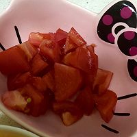 Dice the tomatoes. It won’t be sour if you put more of it, and it will be delicious if you put too much. I put less this time, I only cut half a tomato, I regret it!