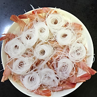 Cut the soaked vermicelli into small pieces, too long to tidy up, and spread them evenly on the shrimp