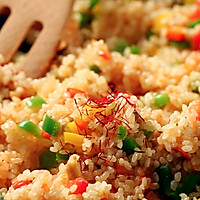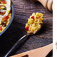Authentic paella must be made with rice, the rice is in a half-cooked state, if you are not used to sandwiching raw rice, you can choose fully cooked. Paella must be accompanied by saffron toning, other substitutes may make the eye color less pure.