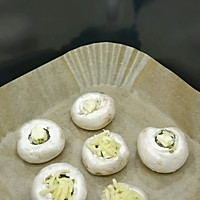Roasted mushrooms are placed on top of the cheese slices.