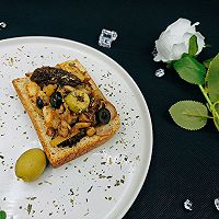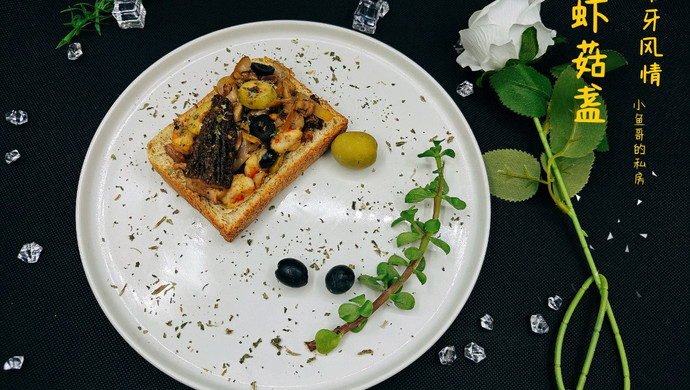Today I would like to introduce a creative dish, the dish not only has the fresh aroma of shrimp mushrooms, but also incorporates the fragrance and mellow style of olives, and the appearance is also unique because of the embellishment of olives, which is a dish that allows people to taste the unique flavor of Spain.