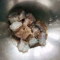 Cut the shrimp into cubes, add salt, pepper, and cooking wine and marinate for 5 minutes,