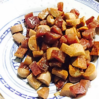 1. Cut the ham and sausage into pieces (you can cut them slightly larger to increase the texture), then fry them with a little olive oil until fragrant, and the cut surface is a little golden brown, and set aside.