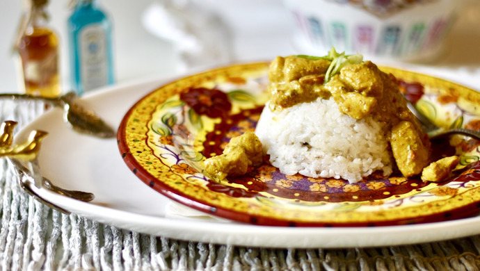 Serve with rice, pour over the chicken curry and curry sauce, and finish with chopped green onions or fresh cilantro for garnish. The taste is beautiful.