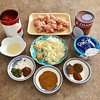 All the ingredients are listed here. I didn’t use lemon juice at the end because the tomatoes were sour enough. Chicken diced, onion, garlic diced, ginger ginger.