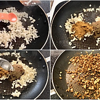 Heat the pan with cold oil, add 2 tablespoons of oil, add onion, garlic and minced ginger, and add a little salt and stir-fry until soft; add curry, turmeric, cumin powder, red pepper powder, eat spicy or not, adjust by yourself. The amount here is medium spiciness. Stir-fry evenly. About 1 minute. Be careful not to stir-fry these dry powders.