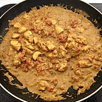 Add tomatoes, I use 1 15-ounce canned tomatoes here, you can use fresh tomatoes directly, 2 will do. Add yogurt and quickly add coconut water to prevent the yogurt from granulating at high temperatures. Stir-fry and stir well.