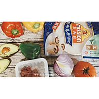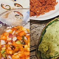 2⃣Mash avocados with a little salt and a little lemon juice to make guacamole; Put bell peppers, onions, and tomatoes in a large bowl, add a little sugar, salt, black pepper, paprika, and lemon juice and stir well to make a salsa sauce without coriander for later use;