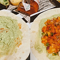 5⃣First, spread a thick layer of avocado sauce, then put salsa, minced beef, cheese sauce, and I also prepared TABASCO (I think it must be added!). There are also two sauces from VE that I recommended before, and you can eat them directly on top!