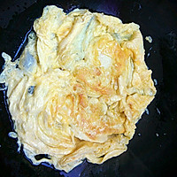 Then pour the scrambled eggs into the pot and stir-fry together, add salt and a little monosodium glutamate.