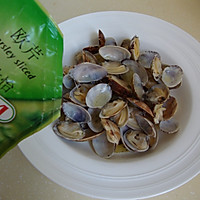 Pour in the clams, sprinkle with some chopped parsley and cover with a lid