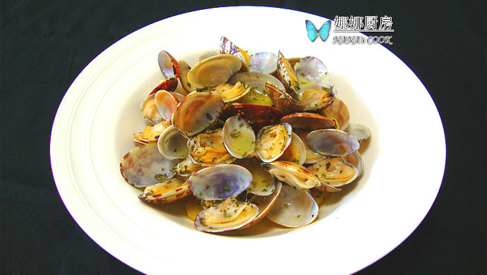 Put the clams, pour in the original soup and sprinkle with parsley to garnish