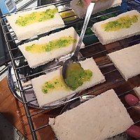 Spread the prepared scallion oil on the sliced toast bread and bake in the oven at 180 degrees for 5 minutes