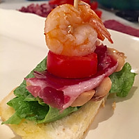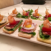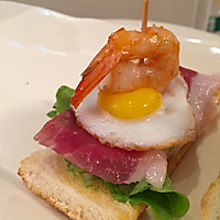 Place the ingredients on the toast in order and secure them with toothpicks at the end.