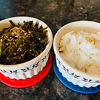 Don’t throw away the filtered bonito flakes and kelp, squeeze the excess water from the bonito flakes, cut a few cuts horizontally and vertically, and shred the kelp. Add some oil and sesame oil to a small wok, add bonito flakes and stir-fry dry, then add shredded kombu, add 1 tbsp sake (Sake), 0.5 tbsp Mirin, 1 tbsp soy sauce, sprinkle with some white sesame seeds, and stir-fry until relatively dry. It is used to accompany white rice, and the taste of happiness is it.