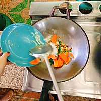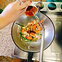 After stir-frying for a while, pour the sauce into the pot, turn to high heat, and stir-fry with the ingredients