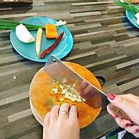Put oil in a pot, heat over medium heat, add dried chili peppers and minced garlic and sauté until fragrant, then add cashew nuts and chicken