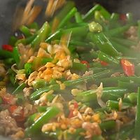 The method of stir-fried chopped green onions with spicy pork in Thai cuisine
