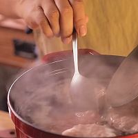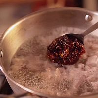 Pour water into the pot, add minced pork, and add chili paste