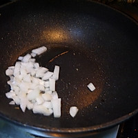 Add a little oil to the hot pan and sauté the onion until fragrant.