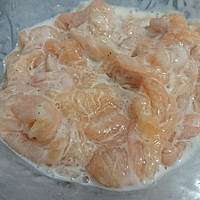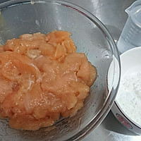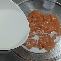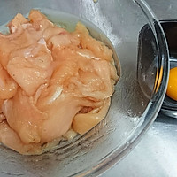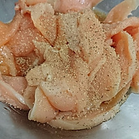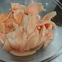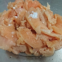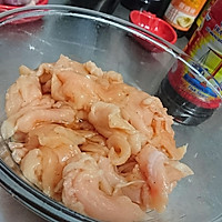 Slice the chicken breast and add 1 tablespoon of cooking wine.