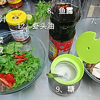 Drizzle with shrimp head oil from prawn paste. It’s red, it’s very beautiful, and it’s not spicy to eat. Finally completed this work.