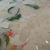 Step 5: Add 1.5 tablespoons of tamarind juice to increase the acidity. After boiling, taste it, it’s delicious, sour and spicy. Step 6: Pour in a jar of coconut milk. Take a bite, it is less sour and spicy at this time, and coconut milk can suppress the sour and spicy taste. Loved the taste. Not too sour, and lemon juice at the end.