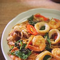 Cooking techniques for stir-fried pasta with seafood in Thailand