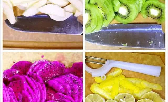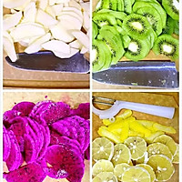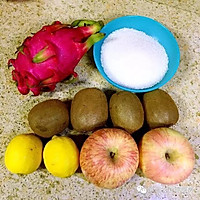 Peel and slice the apple, kiwi, and dragon fruit respectively, and use a planer to shave off the yellow skin of the lemon, then remove the white skin in the middle, and cut the lemon into thin slices