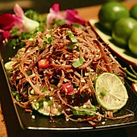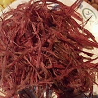 Tear the dry bar into shreds as shown in the picture, throw it with oil at a moderate temperature, pay attention, don’t be too dry, this dry bar itself is cooked food, throw it with oil to make the dry bar more fragrant, throw it well and set aside!