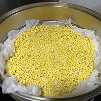 Spread the mung beans on the steamer mat and steam over medium heat for 40 minutes
