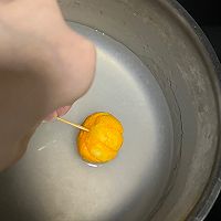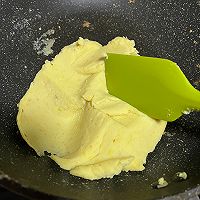 Add butter and a little sugar to the mung bean puree and fry over medium heat