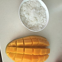 Cut the mango into small pieces, prepare a small bowl, fill the glutinous rice with pressing, and set it