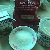 When traveling in Thailand, the most impressive delicacy is Thai mango sticky rice, which has a soft and glutinous taste and a rich coconut aroma, which has always been unforgettable. In order to get close to the taste in my memory, I specially bought Thai jasmine rice and imported coconut milk on Taobao, and finally fulfilled my wish.