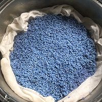 Soak glutinous rice with boiled butterfly pea flower water (glutinous rice is only soaked in butterfly pea flower water, and 250g glutinous rice is also soaked in normal water), glutinous rice soaking time is 3~5 hours, the best way is to soak it one night in advance, the glutinous rice is soaked enough, and it will be fragrant when steamed