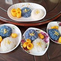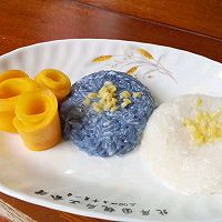 (I forgot to take a picture of this step) After steaming for 15 minutes, take it out, pour it into a large container, add 130g of coconut milk, 30g of sugar, and 2g of salt (remember that these portions are divided into two parts, one blue and one white), stir gently and mix well, and then continue to steam in the pot for 15 minutes (personal taste depends on whether the glutinous rice is fragrant enough, glutinous enough, if not enough)