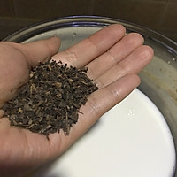 Pour milk into the pot and start heating, add a small handful of black tea powder.